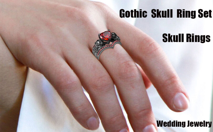 Some skull rings are designed with black plating oxidized silver or matte finishes to create a more dramatic look. Others include gemstones like onyx garnet or red crystals to add intensity and contrast.